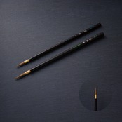 鈴木さんは数種類の面相筆を作っていますが、その中でも抜群に筆先が効き、また墨の含みが良い面相筆で、「どこまでもついてくる筆」として人気の筆です。